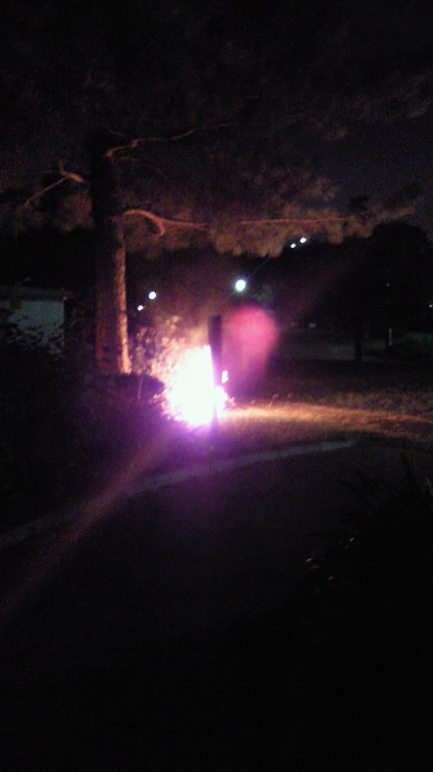 仕事終わって、外を見たら隣の公園から火柱がぁ~~~!