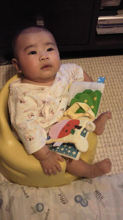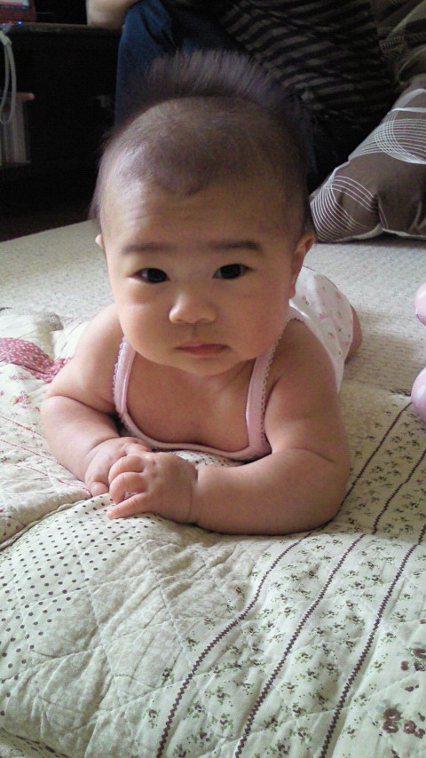 寝返り大好き!うつ伏せになってはニコニコ♪ニコニコ♪