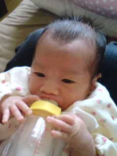 この間はミルク吐き出してチョー焦った。