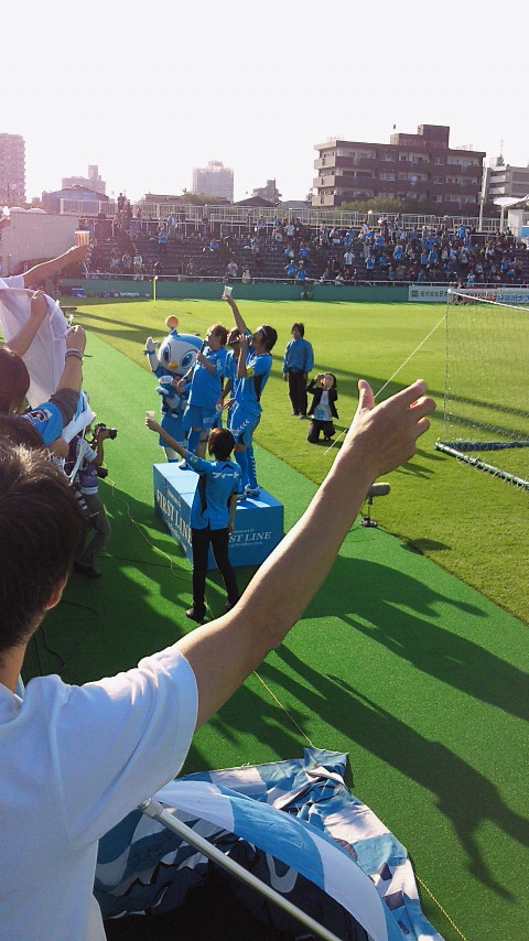 横浜FCのホーム三ツ沢は、ピッチとがスゴく近くて、選手に声も届くし、選手達の声も聞こえる。