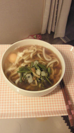6時。千賀チャンが腹減ったというのでうどん作ってあげた。ついでに自分の分も作ってちと早いけど晩ご飯。