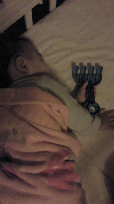 8時。ミルクあげて寝る時間。ミルク飲んだら5分で寝た。