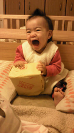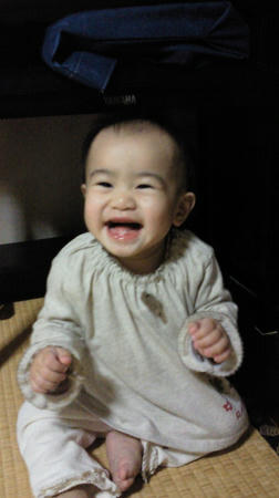 ご機嫌過ぎるくらいご機嫌でずっと大爆笑してた。何がそんなに楽しいんだろう…。特に変顔すると笑う。変な顔って認識があるんだろうか?