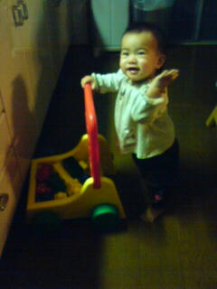 追いかけっこが好きで、ハイハイで追いかけると、キャッキャ言って逃げて、逃げると追いかけてきます。