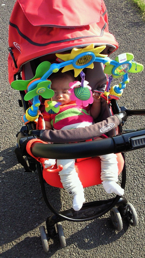 もちろん、おでかけ中のチャイルドシートにも付いちゃうぜっ。