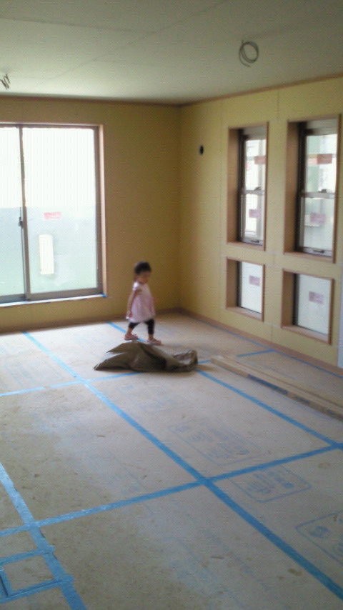 ついこの間まで階段も出来てなかったので、中にあがる事が出来なかったんだけど、やっと階段も出来たし、各部屋の壁も出来たので見に行ってきました。