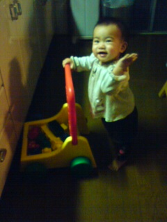 追いかけっこが好きで、ハイハイで追いかけると、キャッキャ言って逃げて、逃げると追いかけてきます。